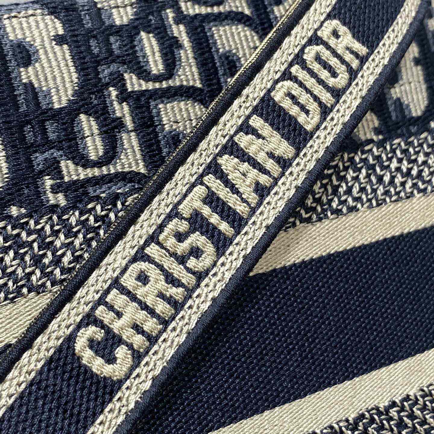 Blue Dior Oblique Embroidery and Calfskin (27 x 14 x 10 cm)