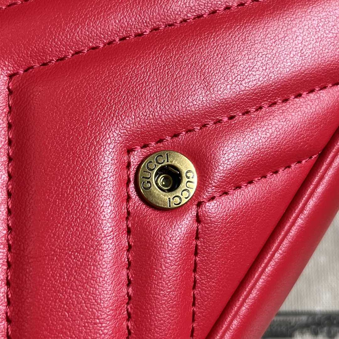 Gucci's signature small accessories are constantly evolving around a dynamic narrative. The leather goods collection is characterized by a bold red shade as part of the Pre-Fall 2023 collection. Here it defines a GG Marmont super mini bag with a gold-toned hardware.