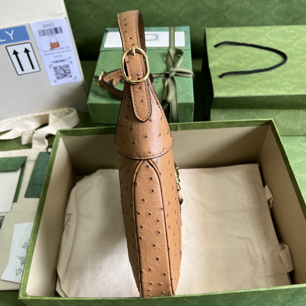 Brought back to the forefront, the recognizable shape is enhanced with an additional, detachable shoulder strap. Attached to the bag with a buckle closure, the second strap adds a contemporary feel to the archival style, providing new ways to wear—from top handle, shoulder to cross body. The style is introduced in ostrich for the Epilogue collection. The Jackie 1961: available exclusively in Gucci stores and on Gucci.com