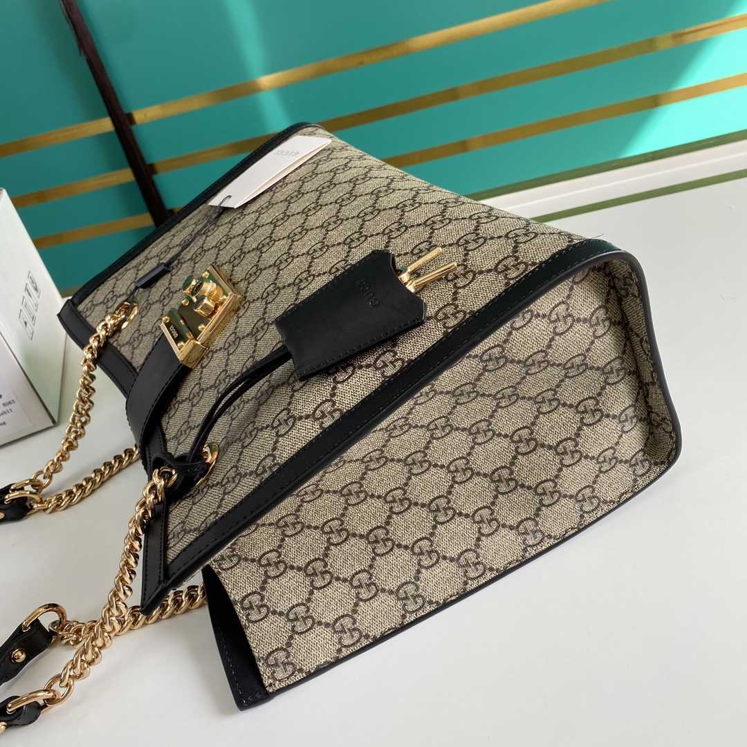 A shoulder bag with a strap that secures with a key lock closure pulled straight from the archives. The structured shape is crafted from beige and ebony GG Supreme canvas and completed with black leather details. First used in the 1970s, the GG logo was an evolution of the original Gucci rhombi design from the 1930s, and from then it's been an established symbol of the House's heritage.