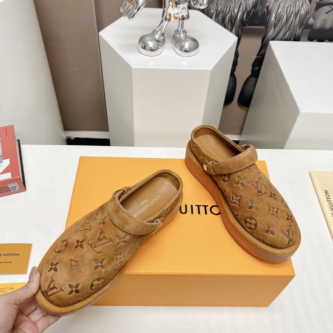 The Aspen platform clog comes in velvety suede calf leather, which is debossed with the iconic Monogram pattern and complemented by a snug shearling lining. This on-trend, year-round style can be worn with or without the backstrap, which is fixed with engraved, gold-tone press-studs. It is finished with a chunky rubber outsole.