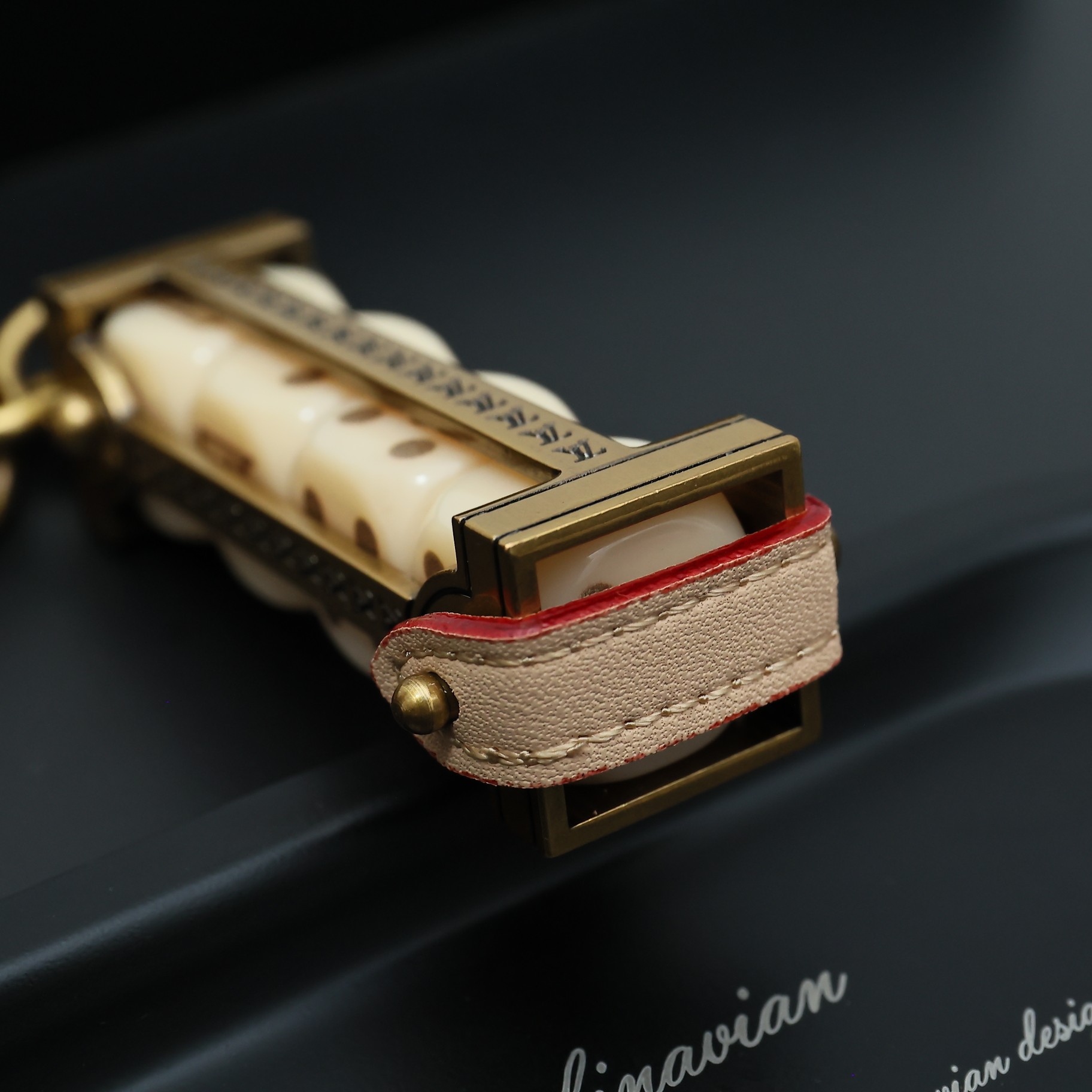 With its four of removable dice, the LV Lovers Dice bag charm and key holder is always ready for a spur-of-the-moment game of chance. This functional and decorative accessory is crafted from gold-color metal with aged finishing, finished with a natural-cowhide strap and the new LV Lovers charm. The snap hook and ring feature fine signature engraving.