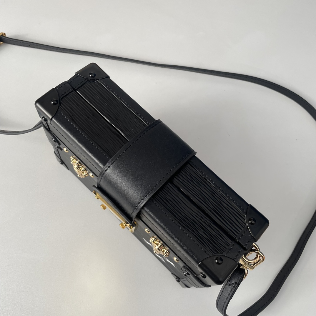 From its shape to its iconic S-lock and polished metal fittings, the Petite Malle handbag reflects the history of Louis Vuitton trunks. This model in signature Epi leather is trimmed with smooth calf and lined with sheepskin printed in the House’s classic Malletage pattern. This impeccably crafted “little trunk” travels effortlessly from day to evening, carried as a clutch or attached to its adjustable strap for cross-body wear.