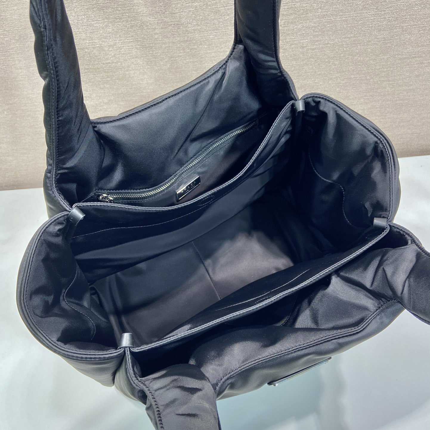 A soft, simple silhouette defines this large tote bag made of iconic Re-Nylon with an inverted construction. The enameled metal triangle logo embellishes the accessory with a sinuous design.