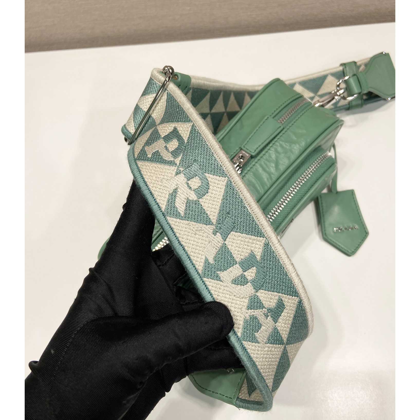 This bag with compact allure is made of nappa leather with a natural, glossy finish. The hand-made wrinkled effect contrasts with the constructed and rigid concept, reinterpreting an everyday object to be worn without constraints. Presented in the Spring Summer 2023 show, the style is accented with a finely embroidered shoulder strap with a sporty mood.